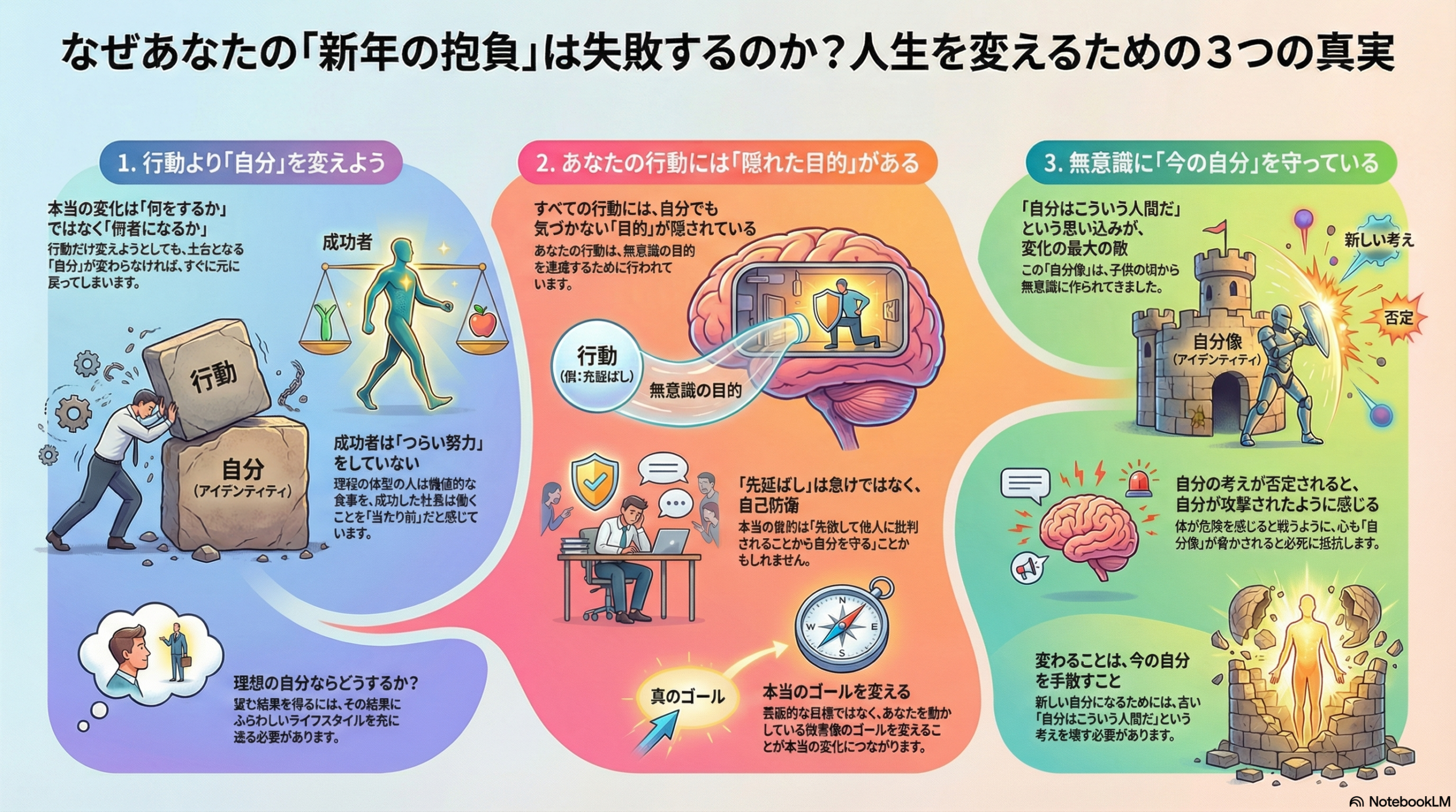 記事では、この「アイデンティティの転換」を軸にした心理プロトコルが紹介されています。新年の抱負がいつも続かない……という方は、ヒントが見つかるかもしれません。