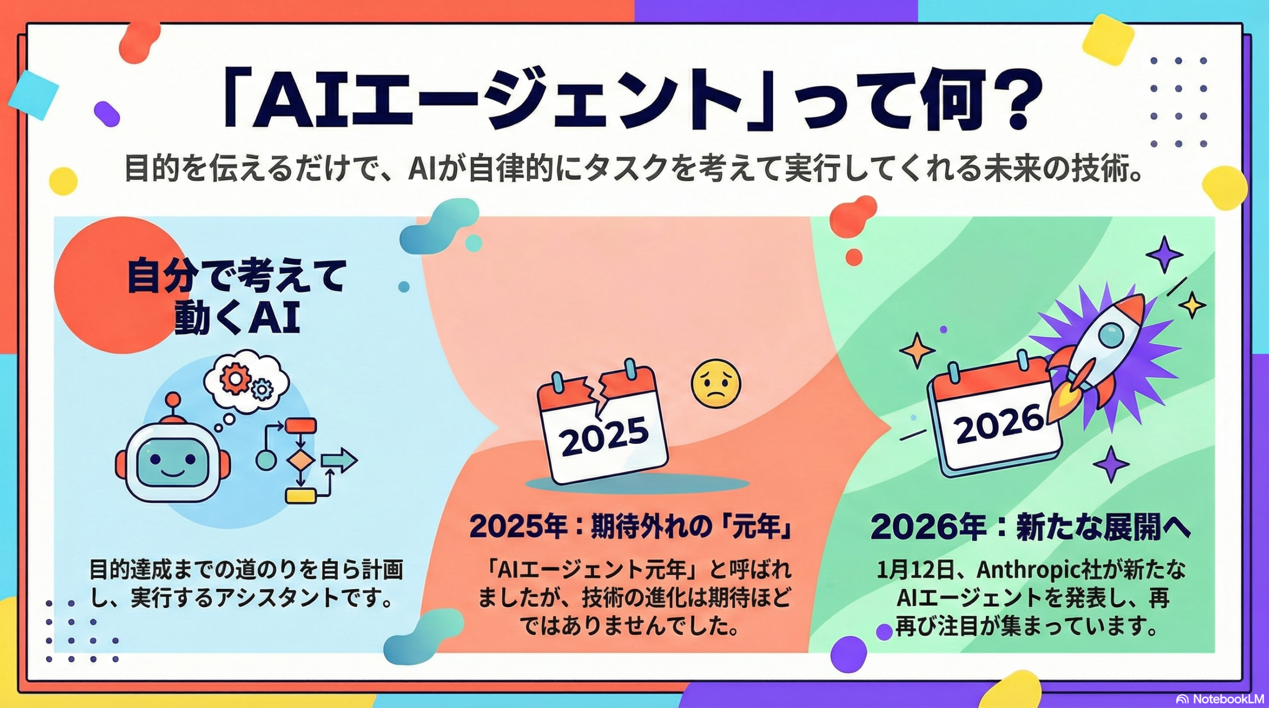 2025年は「AIエージェント元年」と呼ばれました。しかし、蓋を開けてみると、テクノロジーの進化は期待ほどではなかったというのが正直な印象でした。