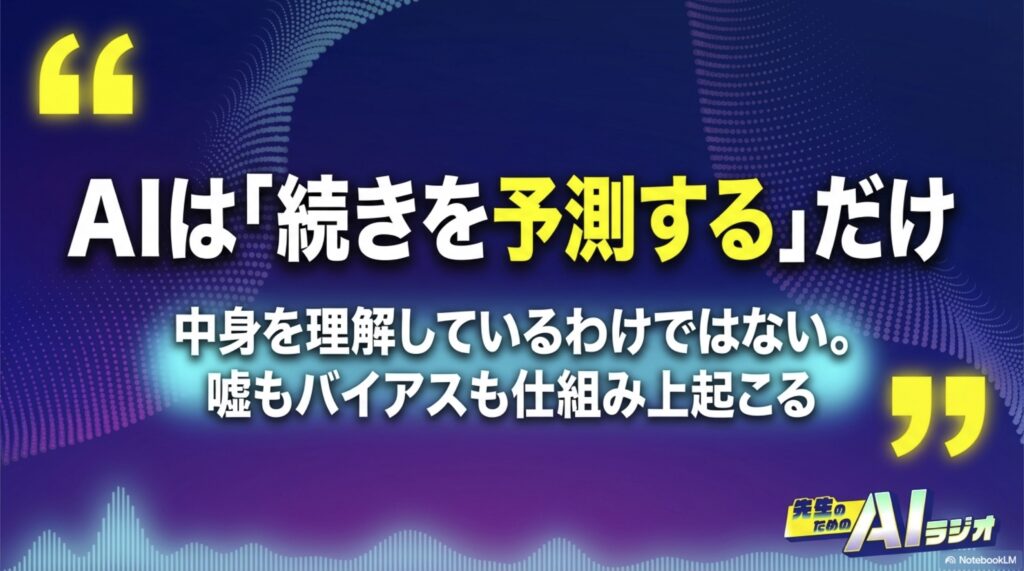 もし生徒からこう聞かれたら、自信を持って答えられるでしょうか。ポッドキャスト「先生のためのAIラジオ」第1回では、この問いを入り口に生成AIの仕組みを掘り下げました。