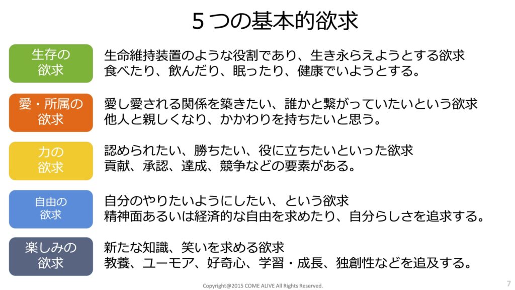 最近、選択理論心理学について興味を持っています。選択理論心理学とは、アメリカの精神科医ウィリアム・グラッサー博士によって提唱された脳の働きを説明しようとする認知心理学の一種です。従来の心理学では「人は外側の刺激によって動機づけられる」と...